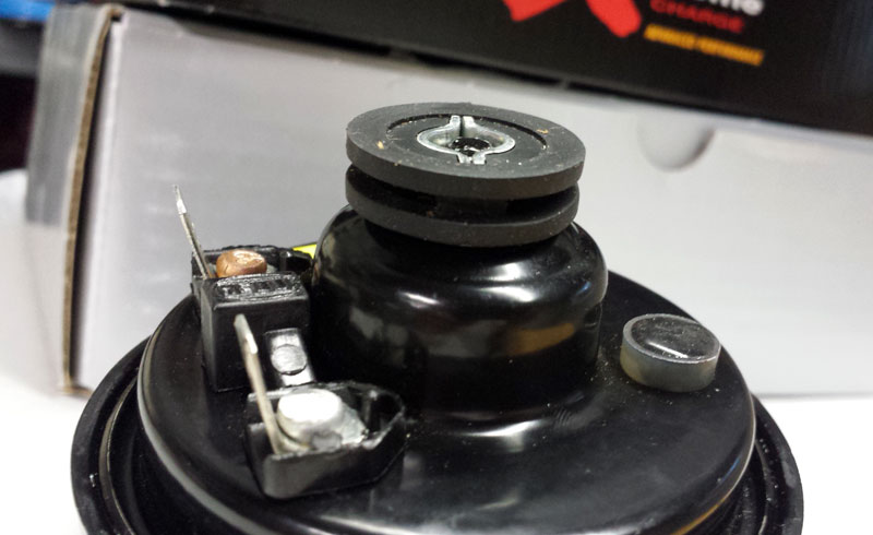 Another problem I ran into was, before I realized that the horn achieves it's volume from the resonance of the plastic shell, is that the horn must not make physical contact with anything but the mounting bracket via the single integrated mounting bolt. If anything touches the plastic shell, it can no longer freely resonate and you get just a muffled moan (which is also what came from me the first time I mounted the horn up against the dresser bar).