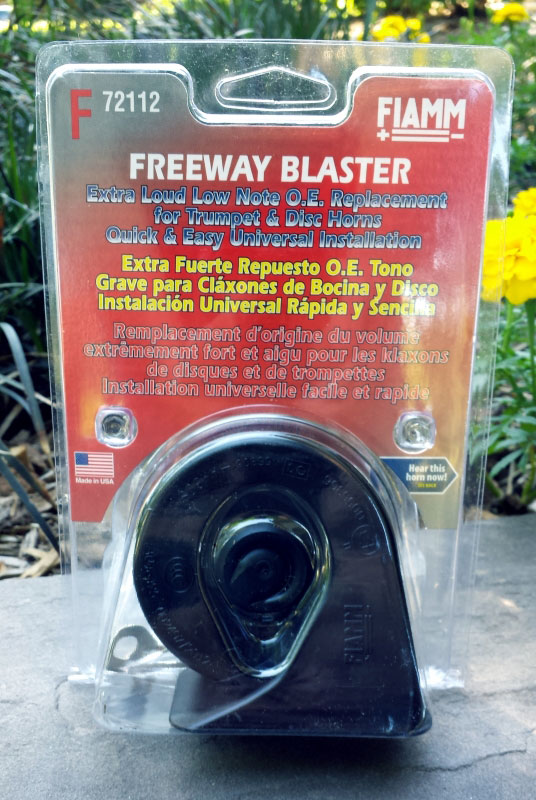 I also wanted a loud horn but didn't feel the need for an air horn and really didn't want to relocate the horn from the stock location and add a relay to handle the extra current. When I came across the Fiamm Freeway Blaster, it looked like just the thing and was cheap enough, about $15.00 shipped, that I wasn't concerned with maybe destroying it if mounting went pear shaped. It also only draws 6 amps and being on a 10 amp fuse, no relay is needed.