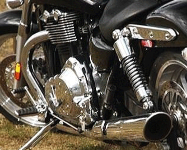 | Black SuperStorm, shortie TORs, wilbers +10mm shocks, Hagon progressive fork springs, Harrison Billet 6 pots.