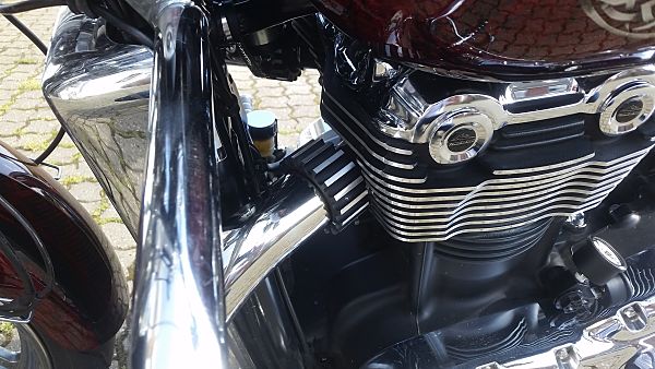 | Big Bird, Bordeaux with " Celtic theme " Airbrush, 2010, 1700CC, ABS, 65.000 km. Lowered with Nitros rear shocks, Linear front springs, Burchard forward footrest kit, Kuryakyn ISO grips, LOTS of chrome, SLcharger REV2+ tune, Modified Cee Baileys windshield, Oil pressure gauge, Air box elimination kit, Portet cylinderhead, Intake cam advanved 8 degree, Exhaust cam retarded 2 degree, 10.5 C/R, Knock sensor, Machined flywheel, DNA Chrome Spoke wheels, 18x8.5"- AVON AV72- 240/40/18, 21x3.5"- AVON AV71- 120/70/21, Corbin seat with backrest, 20W fork oil. Hiflo HF303RC oil filter, Penrite Racing 20-20W60 engine oil, Adjurl lights.
