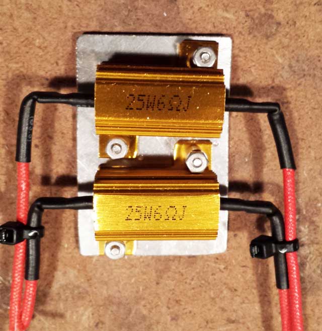 So the choice now is either just forget loads entirely and accept the faster flash rate or add some old fashioned power resistors as loads. The faster flash rate is hardly noticable as too fast but it's intended to indicate a burned out bulb and I still have stock bulbs in the front signals. I'm ordering 50W resistors tonight and will see if I can weather-proof them and fit them in the same space as the Dual Load Equalizer.